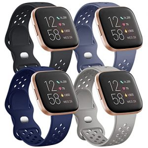 Witzon Compatible with Fitbit Versa / Versa Lite / Versa 2 Bands for Women Men, Breathable Replacement Wristbands Silicone Sport Bands for Versa 2 Smart Watch, Small, Black/Navy/Blue Gray/Gray